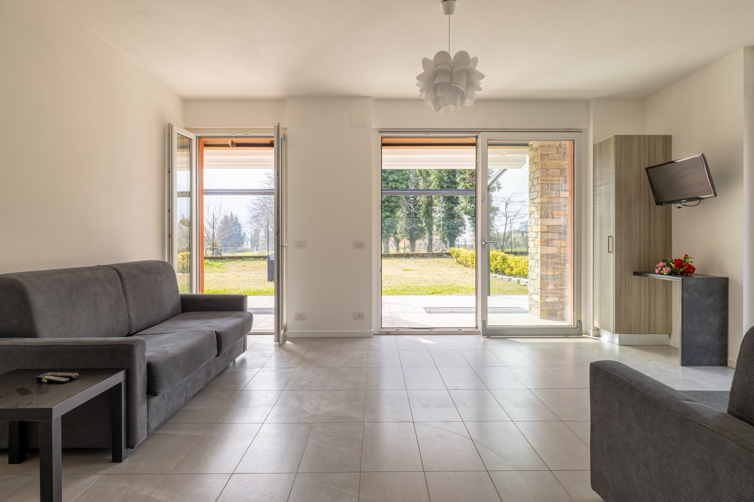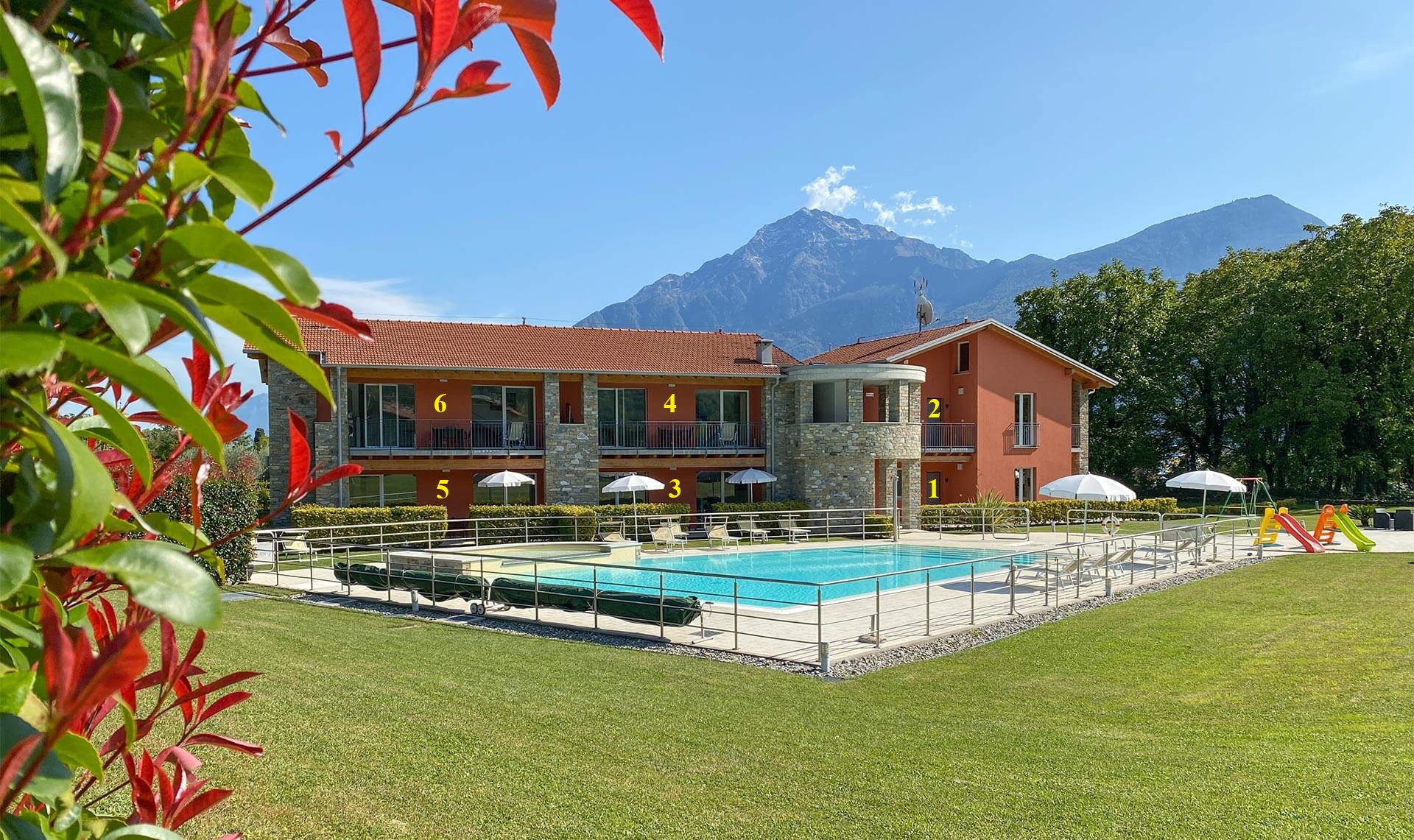 The entire property is immersed in a 2,000-square-meter shared park, which features a large central swimming pool, ideal for relaxation.