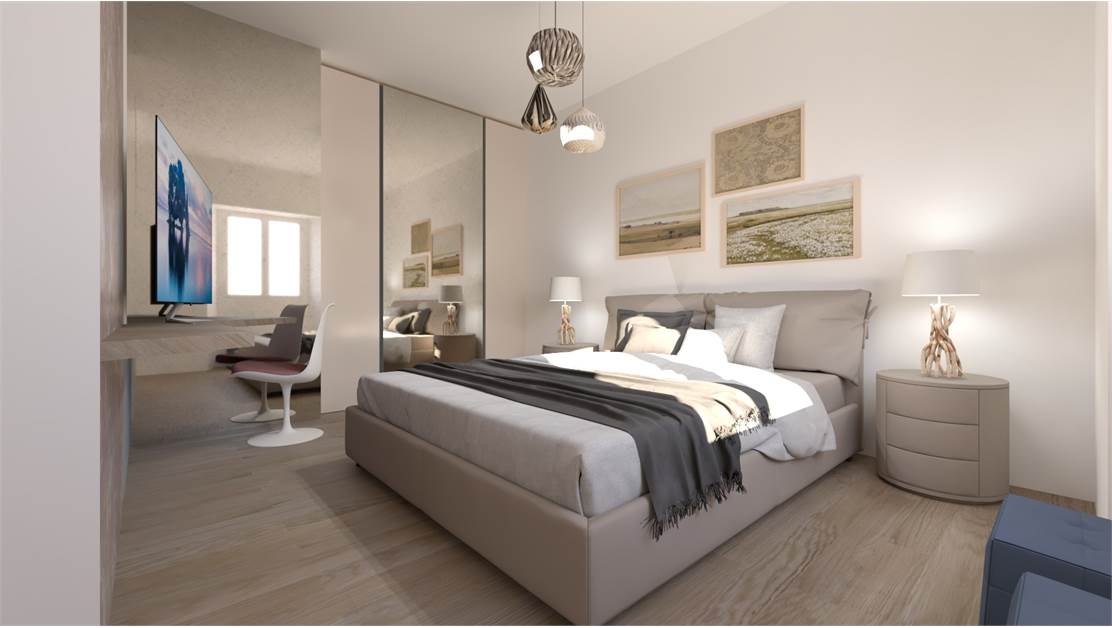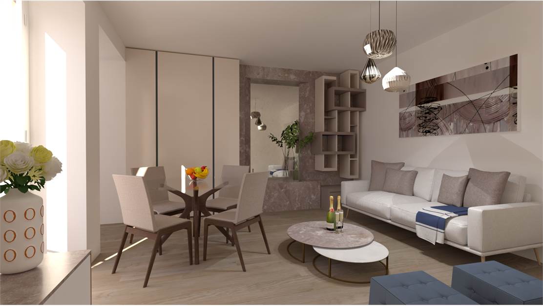 The property for sale is on two levels, and the design includes: the ground floor features an entrance hall, dining room, kitchenette, terrace, bedroom, and bathroom. The first floor includes a living room with terrace, bedroom, and bathroom, as well as an attic accessible via an internal hatch, which can be used as a storage room.