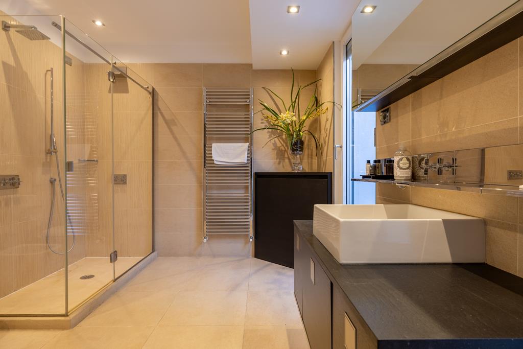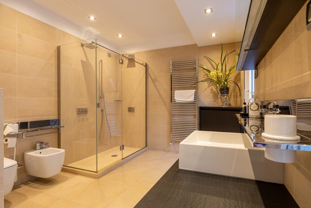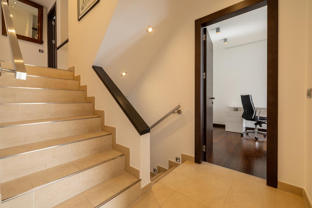 The property also includes a second fully equipped kitchen, utility spaces, and areas dedicated to relaxation and entertainment, perfectly integrated with the garden level.