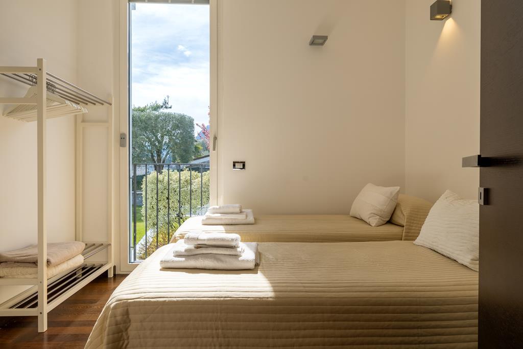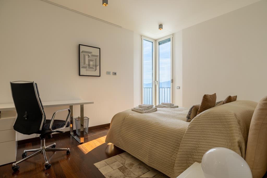 The sleeping area, designed for comfort and tranquility, features elegant bedrooms with striking views of the lake or the surrounding greenery. The intimate and panoramic master suite features an en-suite bathroom and access to a magnificent private roof terrace, where the lake unfolds in all its beauty.