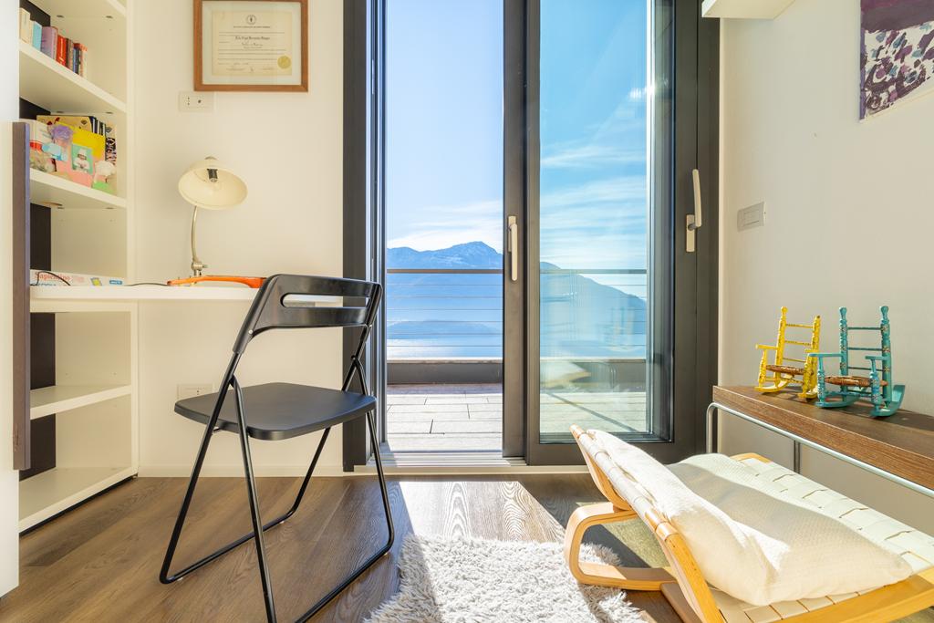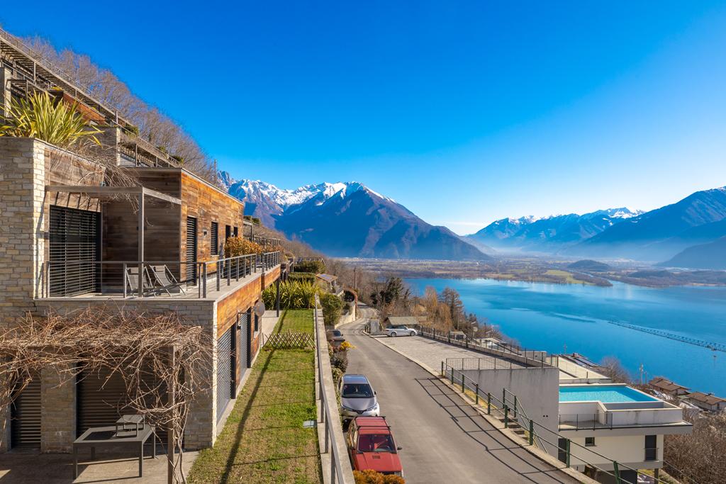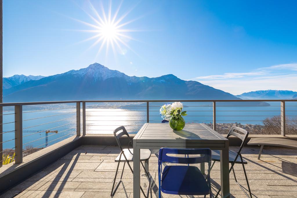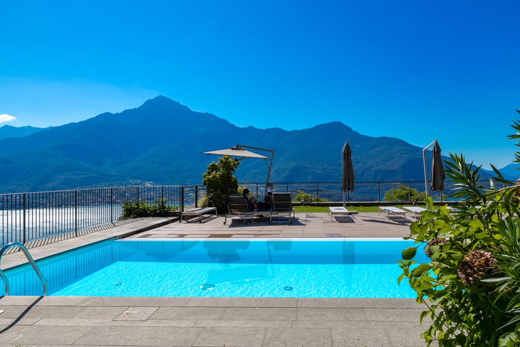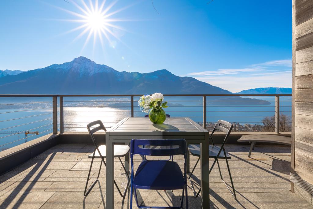 The solarium and swimming pool, shared areas of the complex, are located on the rooftop, offering breathtaking views of the lake and the surrounding mountains.