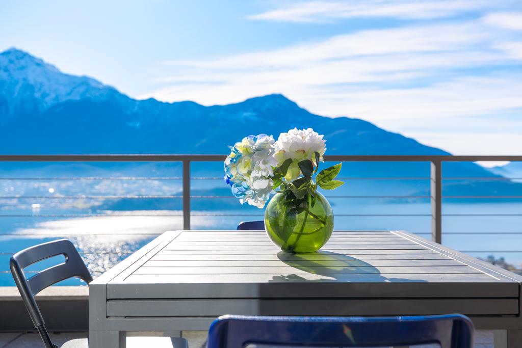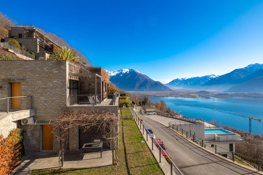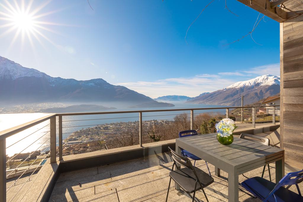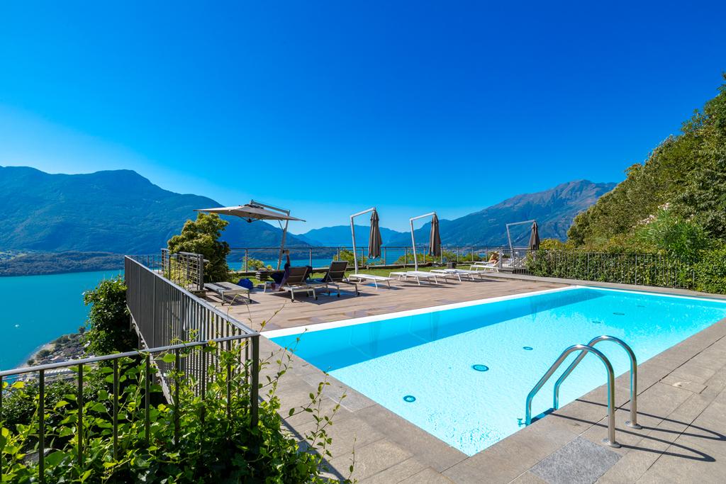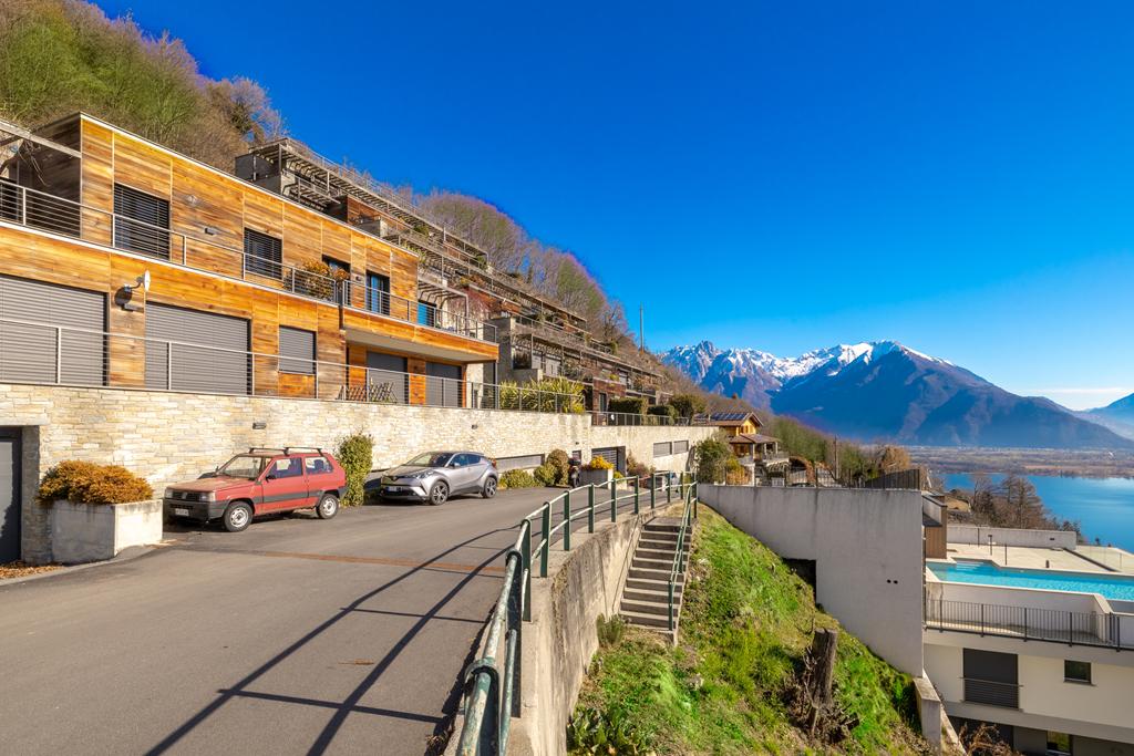 The solarium and swimming pool, shared areas of the complex, are located on the rooftop, offering breathtaking views of the lake and the surrounding mountains.