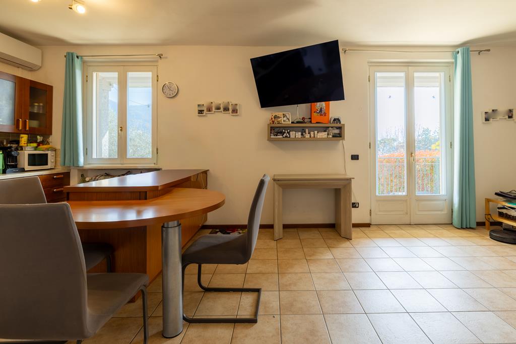 The ground floor entrance leads to a welcoming living room with direct access to the terrace and private 80 square meter garden: an exclusive space, perfect for relaxing, al fresco dining, and enjoying the tranquility of a lake view.