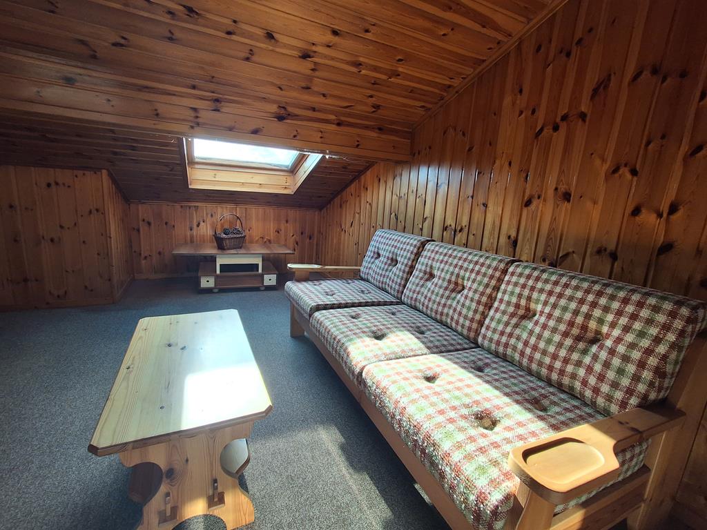 The property comprises an entrance hall, living room with fireplace, kitchen, bathroom, and a large porch overlooking the garden with a splendid lake view. The sleeping area is located on the first floor, comprising two bedrooms, one with a large terrace, and a bathroom. Continuing on the second floor, there is a large room used as a reading/relaxation room.
